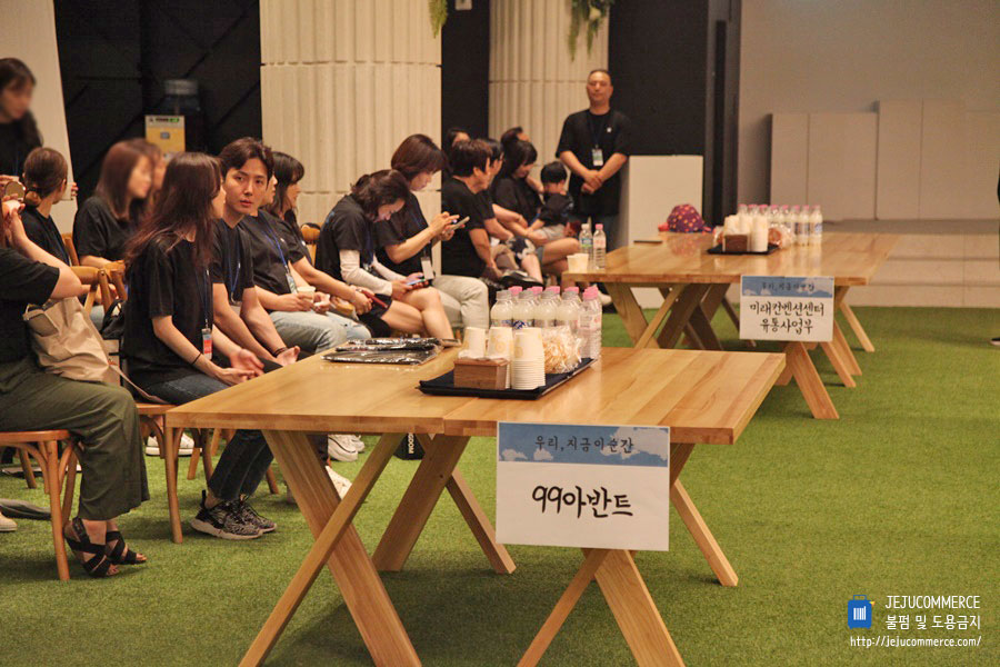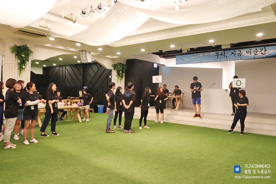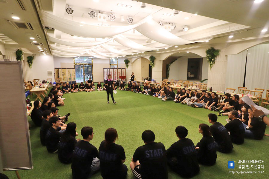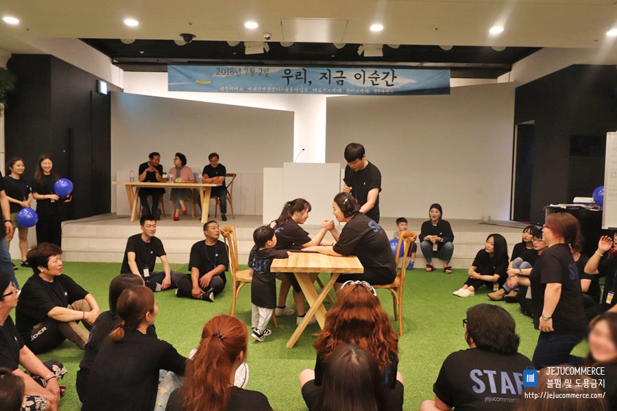 미래그룹 2018 워크샵! 우리, 지금 이 순간 ![]() 안녕하세요! 제주커머스입니다 :) 어제는 몇일 전에 공지해드렸던것처럼 워크샵을 진행했는데요~ 1년에 한번씩 모든 계열사들이 함께 모여 진행하는 미래그룹의 워크샵ㅎㅎ 올해에도 너무너무 재미있었답니다 ♥ ![]() 이번 워크샵은 월례조회 겸 개회식으로 시작이 되었어요~! 원래는 야외에서 왕발통도 타고 둘레길도 걷고 바다도 가는 등 활동적인 프로그램을 진행할 예정이었으나 장마와 태풍소식으로 급하게 실내로 변경되었어요(ㅠㅠ) 아주 급하게 변경되었어도 걱정없이 워크샵을 할 수 있는 미래컨벤션센터가 있어서 너무 다행이었답니다~ ![]() 1년만에 만나는 반가운 얼굴인 99AVANT 분들 :) 서울에 회사가 위치해있기때문에 워크샵아니면 보기가 힘들어서 너무 반가웠어요!! ![]() 저희 워크샵의 장점 중 하나는 자녀들도 데려와서 함께 할 수 있다는 점! 로고가 새겨진 단체티를 아이들에게도 준답니다 ㅎㅎ ![]()