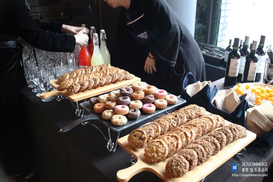 오후3시부터 오픈식의 시작이라 그 전부터 다들 바쁘게 준비를 하고 있는 모습이 눈에 띄더라구요! 점심을 먹었지만 그래도 눈에 띄는 음식들.. 식욕은 어쩔 수 없나봐요 나도 모르게 하나 집어먹을 뻔ㅋㅋ