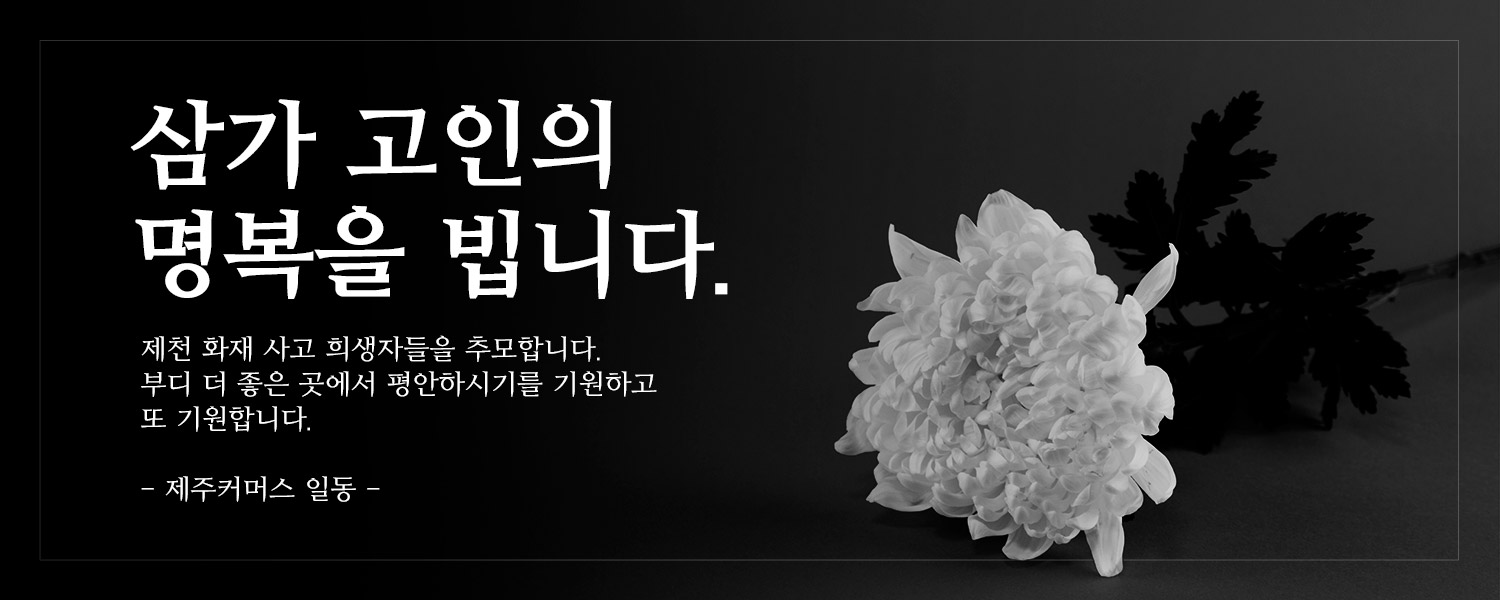 ![]() 2018년 새해가 벌써 코앞으로 다가왔습니다. 다들 2017년 올 한해는 잘보내셨나요? 한해를 마무리하는 연말. 12월 21일 제천 화재 사고라는 안좋은 소식이 있어서 많은분들이 마음이 아프셨을거라 생각됩니다. 12월26일까지 스물아홉분의 장례식이 모두 끝이 났으며, 제천시에서는 12월30일까지 추모기간으로 지정을 했다고 합니다. 저희 제주커머스 역시나 제천화재 사고로 운명을 달리하신 희생자분들의 명복과 부상자분들의 빠른 쾌유를 빌며, 아울러 이번 화재로 가족을 잃은 유가족여러분들께 진심을 담아 위로의 말씀을 드립니다. ![]() 2018년도 무술년에는 이러한 슬픈소식없이 기쁨만 가득한 한해가 되기를 간절히 기원합니다. 모두 건강하시고, 원하는 모든일을 성취하여 승승장구하시길 바랍니다. 황금개띠의 해 무술년 새해 복 많이 받으세요.